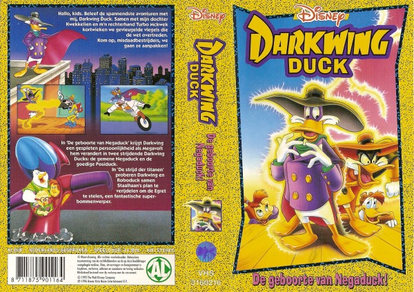 | Hallo, kids. Beleef de spannendste avonturen met mij, Darkwing Duck. Samen met mijn dochter Kwekkelien en m'n rechterhand Turbo McKwek kortwieken we gevleugelde vlegels die de wet overtreden. Kom op, misdaadbestrijders, we gaan ze aanpakken! In 'De Geboorte Van Negaduck' krijgt Darkwing een gespleten persoonlijkheid als Megavolt hem verandert in twee strijdende Darwing Ducks: de gemene Nedagduck en de goedige Posiduck. In 'De Strijd Der Titanen' proberen Darkwing en Roboduck samen Staalhaan's plan te verijdelen om de Egret te stelen, een fantastische superbommenwerper. | |||||||||||||||||||||||||||||||||||||||||||