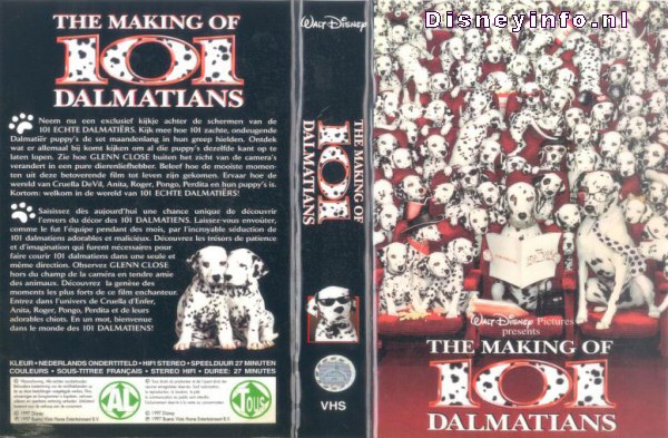 | Neem nu een exclusief kijkje achter de schermen van de 101 ECHTE DALMATIËRS. Kijk mee hoe 101 zachte, ondeugende Dalmatiër puppy's de set maandenlang in hun greep hielden. Ontdek wat er allemaal bij komt kijken om al die puppy's dezelfde kant op te laten lopen. Zie hoe GLENN CLOSE buiten het zicht van de camera's verandert in een pure dierenliefhebber. Beleef hoe de mooiste momenten uit deze betoverende film tot leven zijn gekomen. Ervaar hoe de wereld van Cruella DeVil, Anita, Roger, Pongo, Perdita en hun puppy's is. Kortom welkom in de wereld van 101 ECHTE DALMATIËRS! |