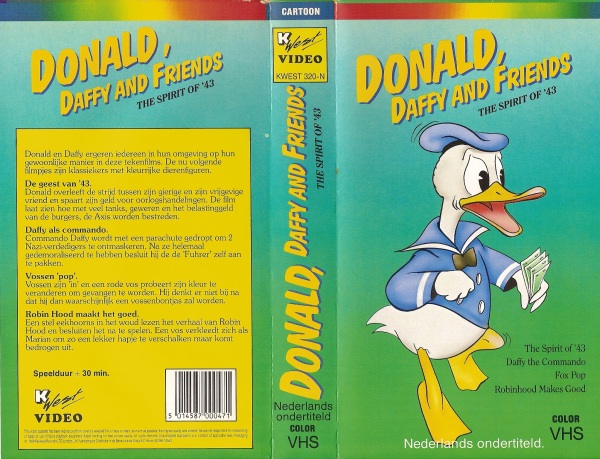 | Donald en Daffy ergeren iedereen in hun omgeving op hun gewoonlijke manier in deze tekenfilms. De nu volgende filmpjes zijn klassiekers met kleurrijke dierenfiguren. De geest van '43. Donald overleeft de strijd tussen zijn gierige en zijn vrijgevige vriend en spaart zijn geld voor oorlogshandelingen. De film laat zien hoe met veel tanks, geweren en het belastinggeld van de burgers, de Axis worden bestreden. Daffy als commando. Commando Daffy wordt met een parachute gedropt om 2 Nazi-verdedigers te ontmaskeren. Na ze helemaal gedemoraliseerd te hebben besluit hij de de'Fuhrer' zelf aan te pakken. Vossen 'pop' Vossen zijn 'in' en een rode vos probeert zijn kleur te veranderen om gevangen te worden. Hij denkt er niet bij na dat hij dan waarschijnlijk een vossenbontjas zal worden. Robin Hood maakt het goed. Een stel eekhoorns in het woud lezen het verhaal van Robin Hood en besluiten het na te spelen. Een vos verkleedt zich als Marian om zo een lekker hapje te verschalken maar komt bedrogen uit. | |||||||||||||||||||||||||||||||||||||||